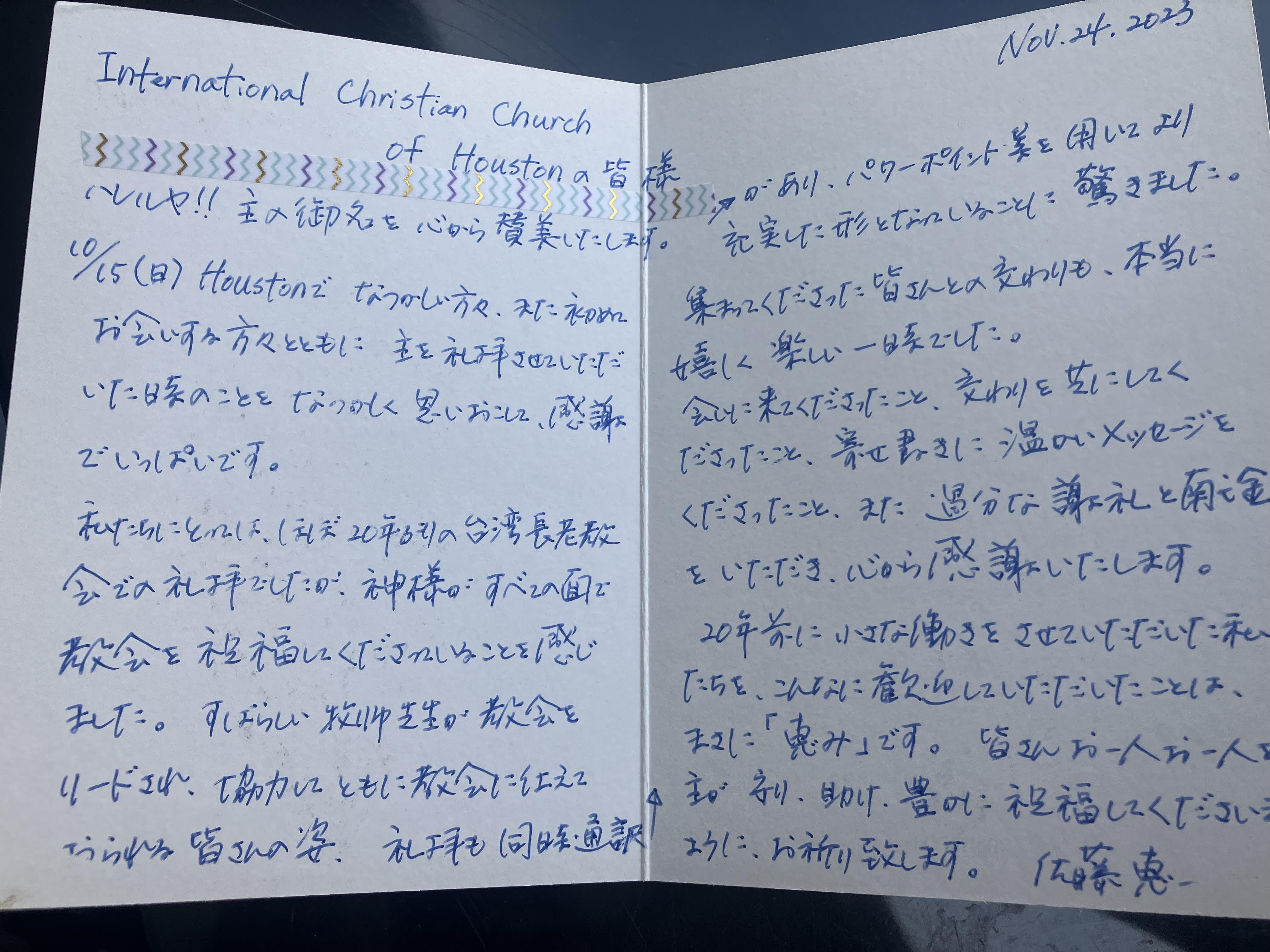 - Rev. & Mrs. Sato (who visited us in October) has sent us the thank you notes. Please see it by clicking here.